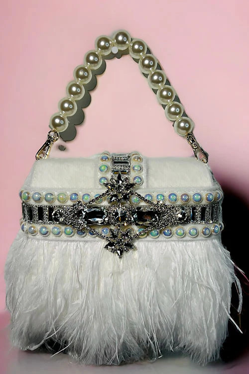Indulge in luxury with the Feather Rhinestone Handbag. This exquisite piece elevates your style with mink and diamond accents, perfect for formal occasions. Versatile as a shoulder bag or messenger bag, it sparkles with uniqueness. Make a statement with this 2024 new arrival, ready to ship in just 3-5 days!