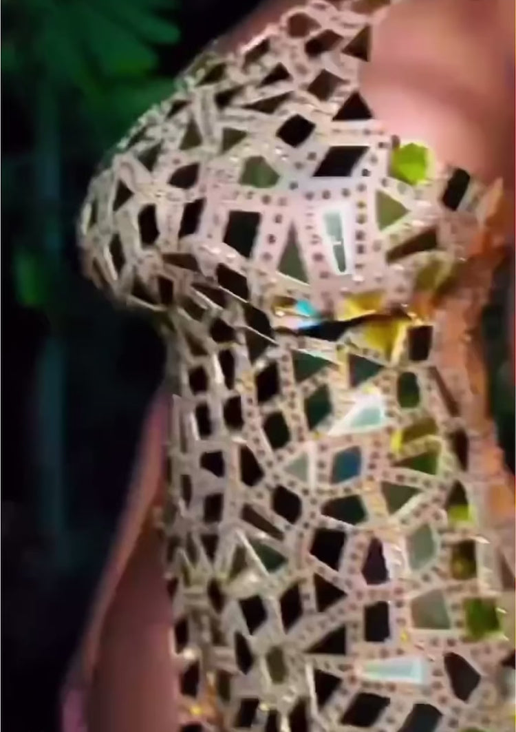 This Diamante Mirror Dress is sure to evoke a sense of luxurious glamour. It is crafted from mesh and adorned with real Gold mirrors for a vibrant and exotic look. Perfect for any special occasion, from prom to wedding receptions and girls' night out. Shine like a diamond in this ultra-stylish and elegant dress.