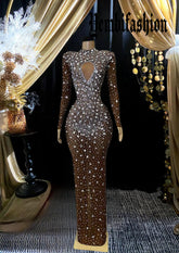 Elevate your style with the Marina Diamante Dress, a show-stopping piece designed to make you shine. This rhinestone dress features intricately placed sparkling rhinestones that catch the light, adding glamour to any event. Whether you're attending a formal event or heading out for a special evening, this maxi dress drapes gracefully to the floor, offering both elegance and comfort. Its flattering silhouette, high-quality materials, and exquisite details make it a must-have for your wardrobe. Slip into the Marina Diamante Dress and prepare to dazzle wherever you go