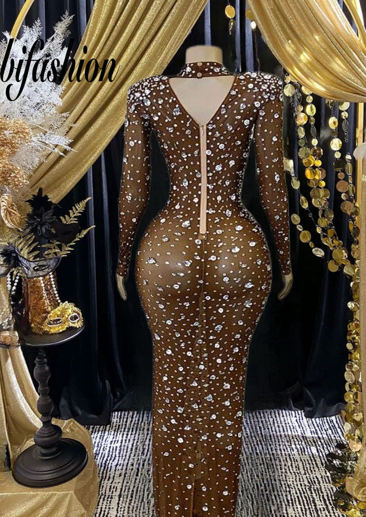 Rhinestone mirror dress| RhinestoneElegance| BlingBlingDress| RhinestoneChic - Yembifashion