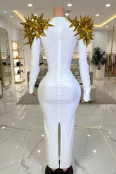 The long sleeves and body-contouring silhouette gracefully sculpt your figure, while the center-back slit allows for easy, elegant movement. Whether you’re attending a red carpet event, exclusive gala, or high-end celebration, this gown ensures you shine like the star you are.