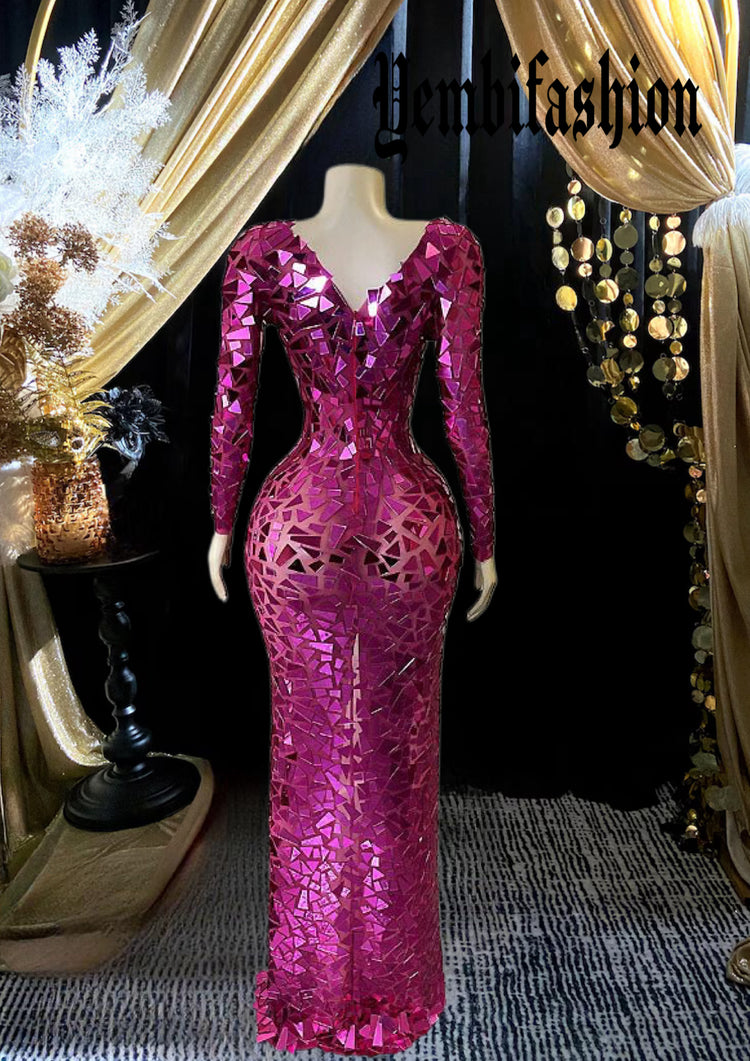 Make a statement in our Mirror Dress, a dazzling masterpiece designed for elegance and impact. This long sleeve dress is carefully crafted to offer a flattering fit, while the detailed embellishments elevate its look. The front is adorned with sparkling accents, making this embellished dress perfect for special occasions or a glamorous night out. Whether you're looking to stand out at a formal event or simply add a bit of sparkle to your evening, this dress is the perfect choice for a fashion-forward wardrobe.