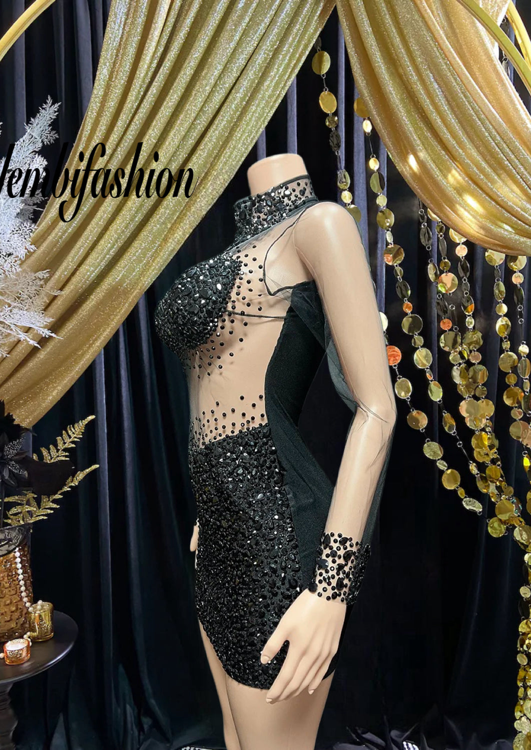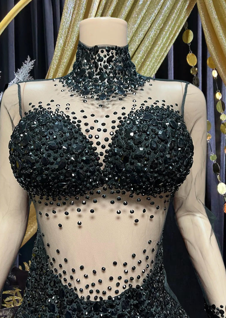 Get ready to turn heads with this stunning Rhinestones Mesh Bodycom Dress, designed to enhance your natural curves. This sleek and elegant black Bodycom dress fits like a glove, providing a flattering silhouette for any occasion. Whether you're attending a formal event or a night out with friends, this dress offers the perfect combination of sophistication and allure. The mesh detailing adds a touch of intrigue, making this Mesh Dress stand out from the crowd. Crafted from high-quality materials, this dress offers both style and comfort, ensuring you look and feel your best all night long.