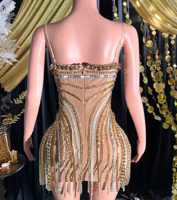 Turn heads in the stunning ROSA DIAMANTE Dress! This dazzling mini dress, embellished with sparkling rhinestones, is the perfect combination of glamour and elegance. Ideal for special occasions, the ROSA DIAMANTE Rhinestone Mini Dress will make you shine at every event.