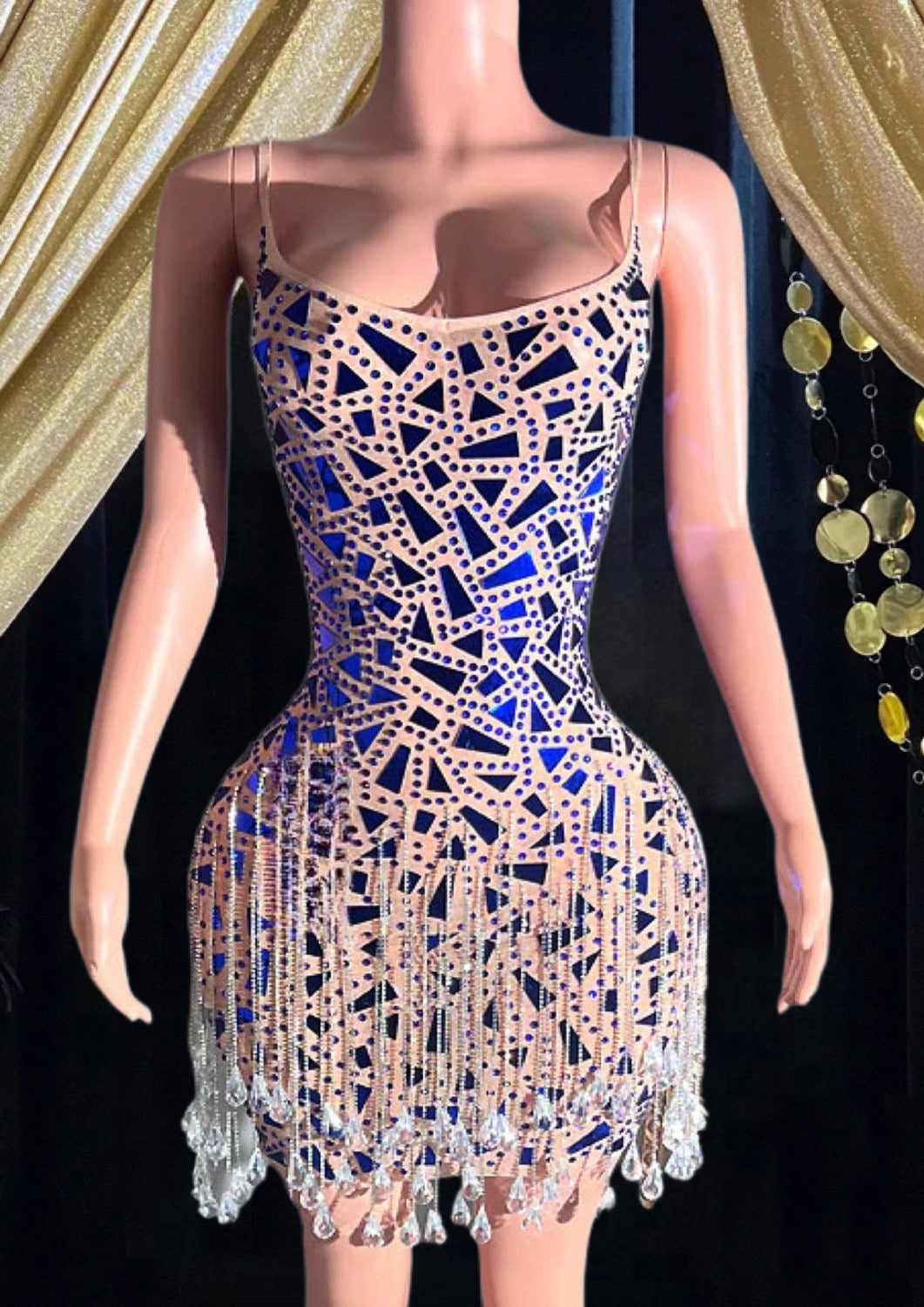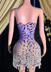 This Silver Diamante Mirror Dress is sure to evoke a sense of luxurious glamour. It is crafted from mesh and adorned with real silver mirrors for a vibrant and exotic look. Perfect for any special occasion, from prom to wedding receptions and girls' night out. Shine like a diamond in this ultra-stylish and elegant dress.