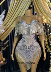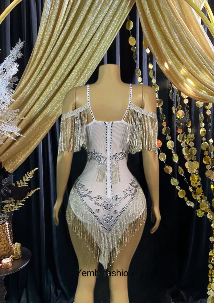 Western Sequin Fringe Cowgirl Outfit |DIAMANTE WHITE DRESS - Yembifashion Western Sequin Fringe Cowgirl Outfit |DIAMANTE WHITE DRESS - Yembifashion