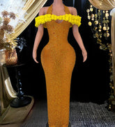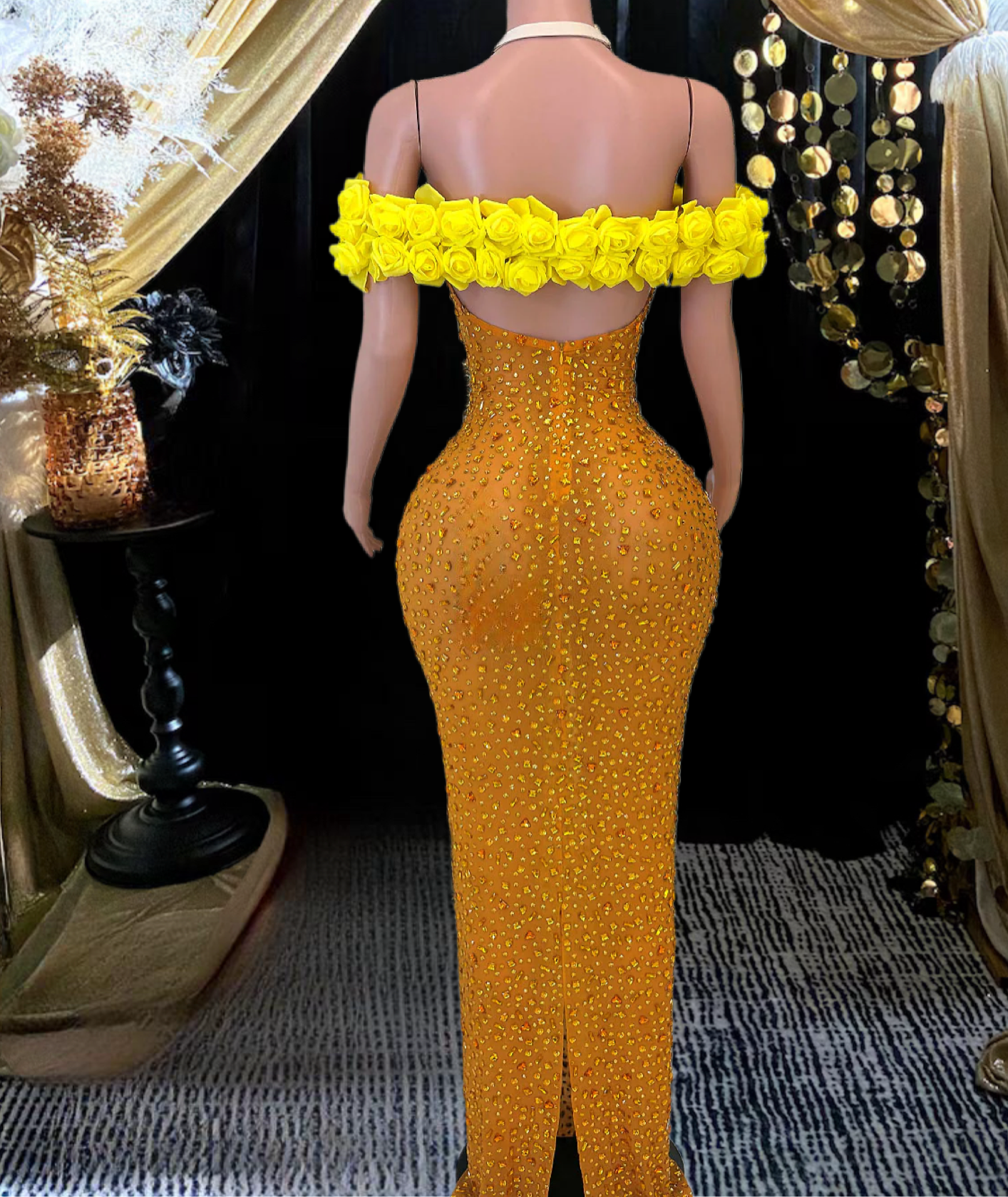 Turn heads in this stunning Yellow Diamante Long Dress. Featuring intricate diamante detailing, this dress exudes glamour. Perfect for special occasions, it offers a flattering fit with luxurious fabric for ultimate comfort and style. Elevate your evening wardrobe today!