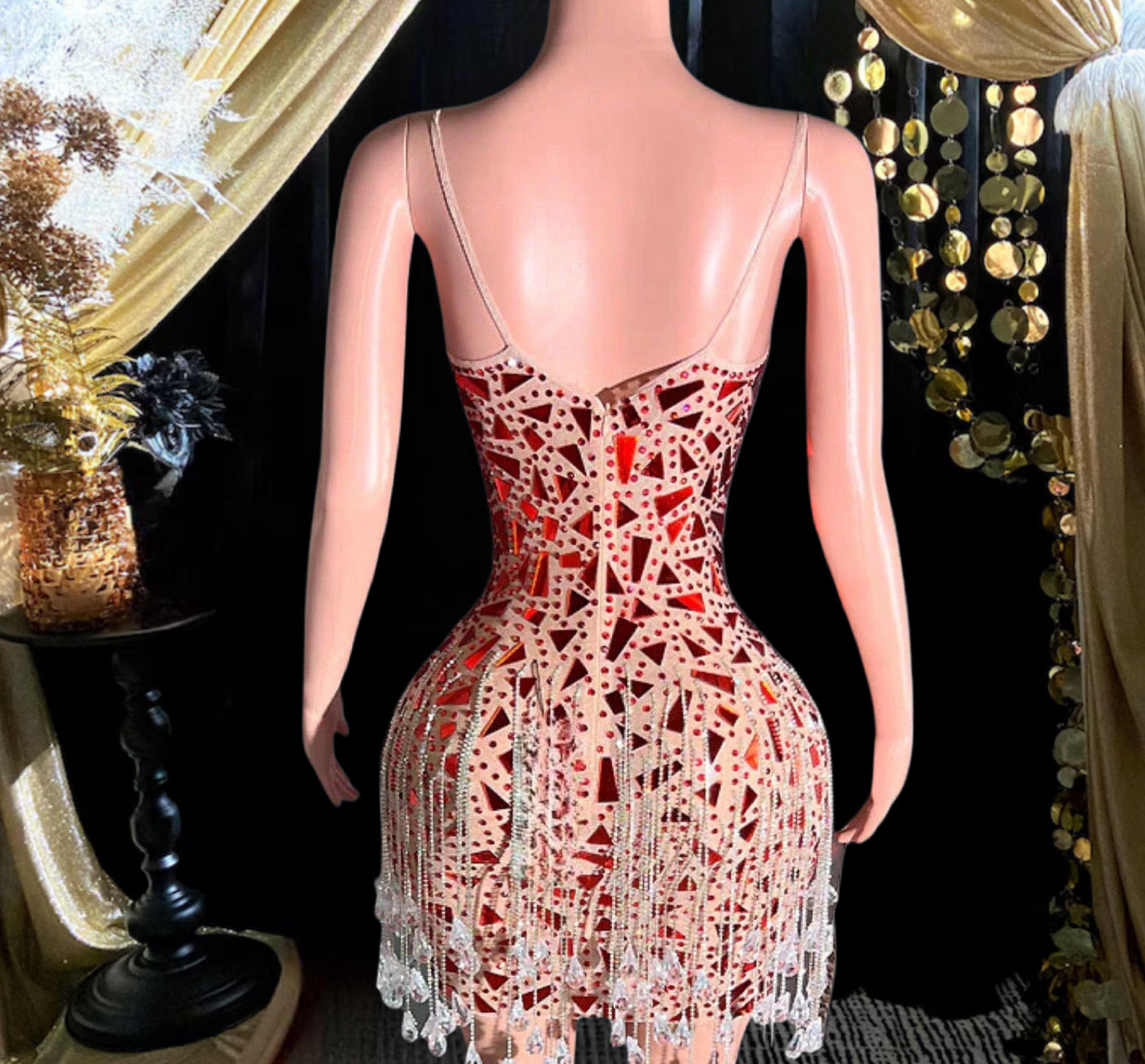 This Zita Diamante Mirror Dress is sure to evoke a sense of luxurious glamour. It is crafted from mesh and adorned with real silver mirrors for a vibrant and exotic look. Perfect for any special occasion, from prom to wedding receptions and girls' night out. Shine like a diamond in this ultra-stylish and elegant dress.