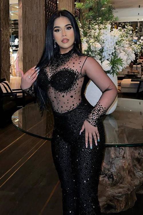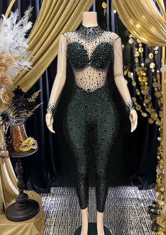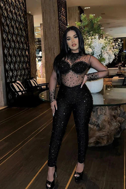 Be the queen of the night in the Laure Diamante Bodysuit. This elegant piece is made from stretchy mesh for a soft, comfortable fit and features a sophisticated array of rhinestones for an exotic and vibrant look. Perfect for a variety of special occasions such as a wedding, after-wedding party, dinner date, or girls' night out. Let yourself shine and be the standout of the evening.