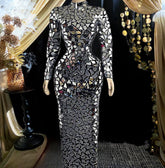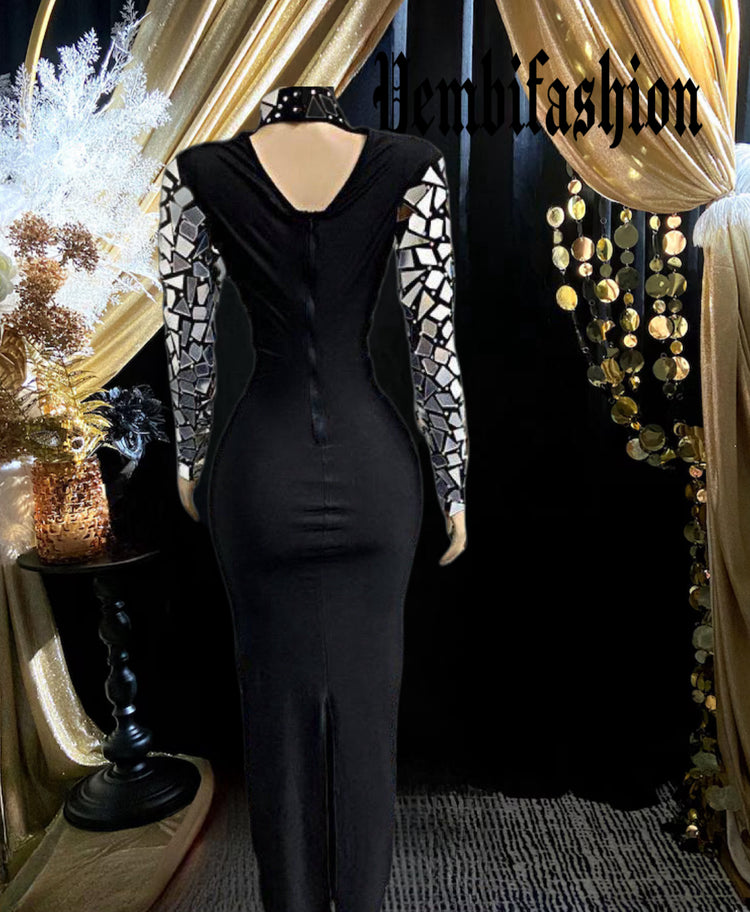 Diamante Mirror Dress -  Ball Dress With Long Sleeve Diamante Mirror Dress -  Ball Dress With Long Sleeve