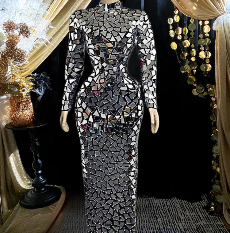 Diamante Mirror Dress -  Ball Dress With Long Sleeve