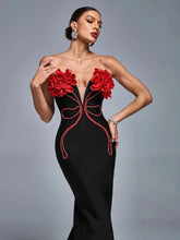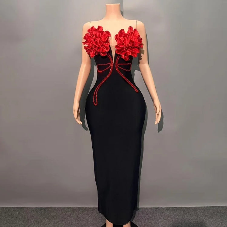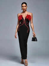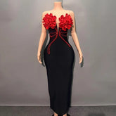 Turn heads at your next event with this Black Sexy Off Shoulder Bandage Dress. Designed to hug your curves in all the right places, this elegant dress features a sparkling rhinestone flower design that adds a luxurious touch. The off-shoulder neckline brings a sexy silhouette, while the slim-fit bandage fabric enhances your figure and ensures a flattering fit.