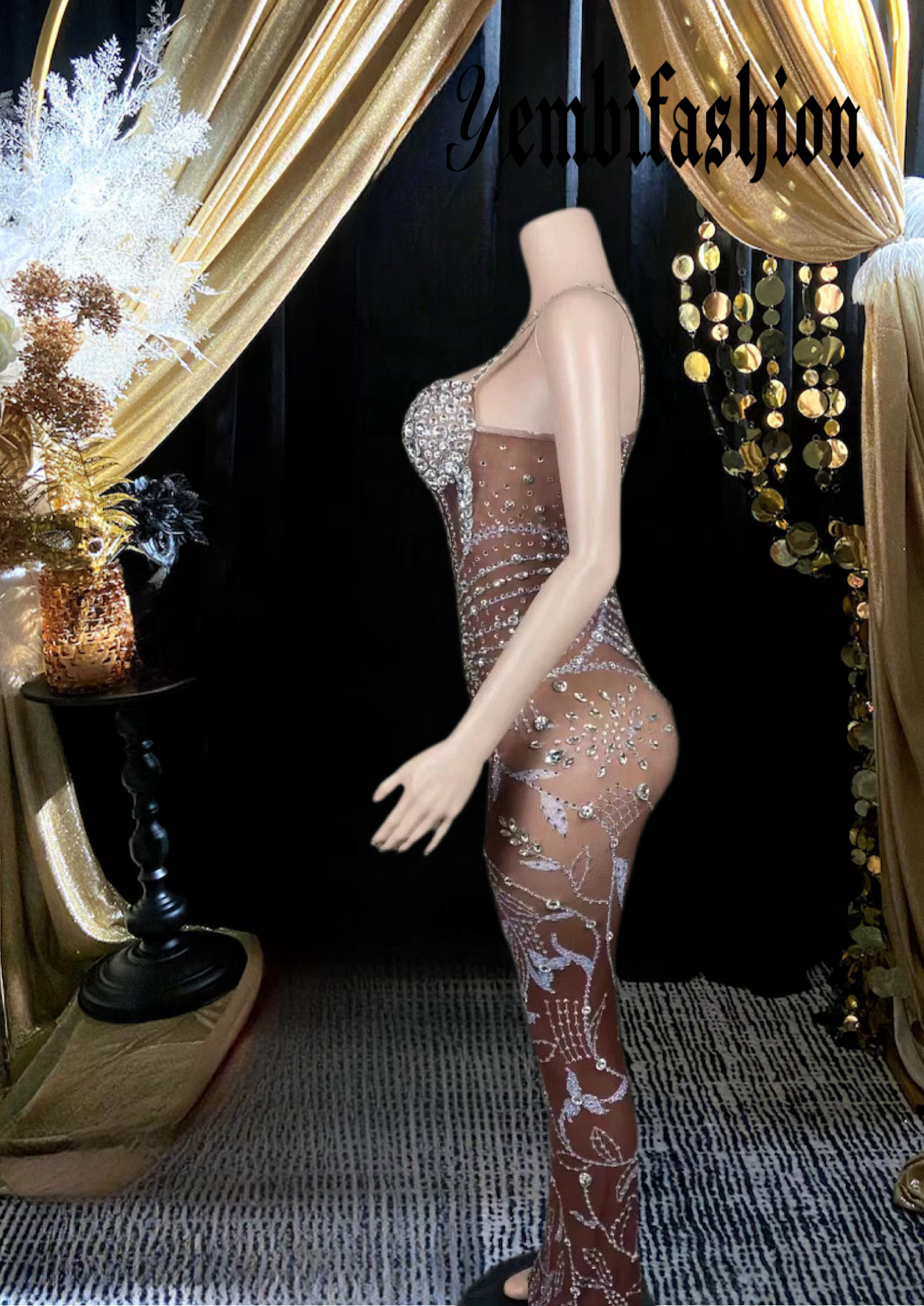 Turn heads with this stunning transparent dress that combines elegance with a modern twist. Crafted from breathable mesh, this long dress features a flattering silhouette that highlights your figure while maintaining a chic, sophisticated look. Whether you're heading to an evening event or a stylish gathering, this mesh dress is the ultimate choice for those who want to make a bold statement. Pair it with your favorite accessories to elevate your style effortlessly. Available in multiple sizes to suit every body type.