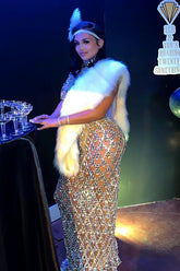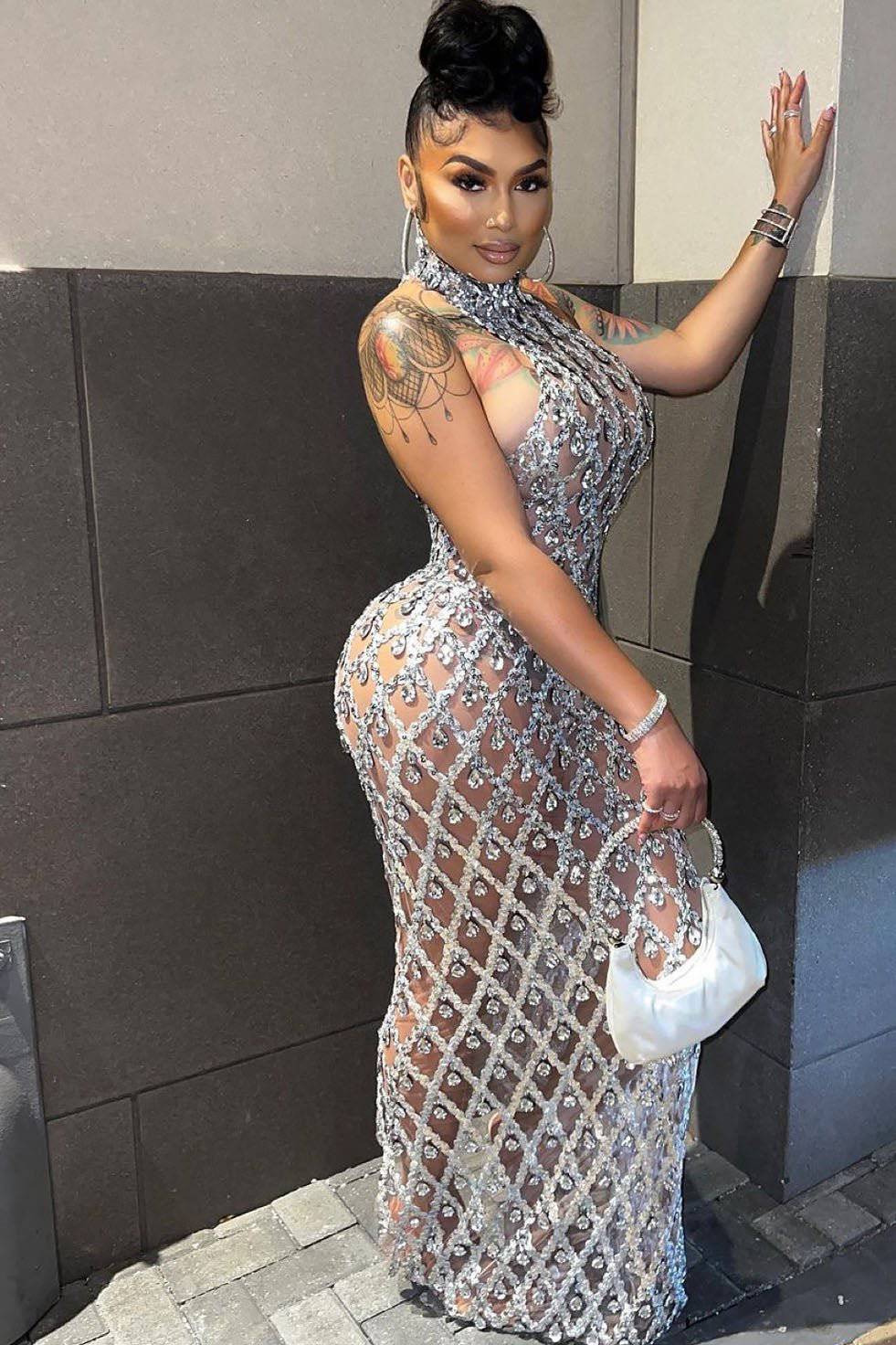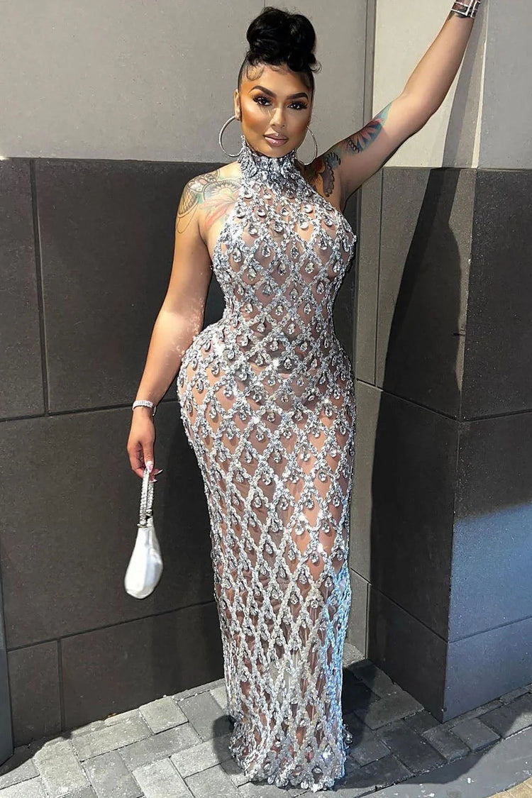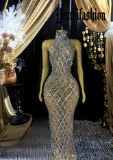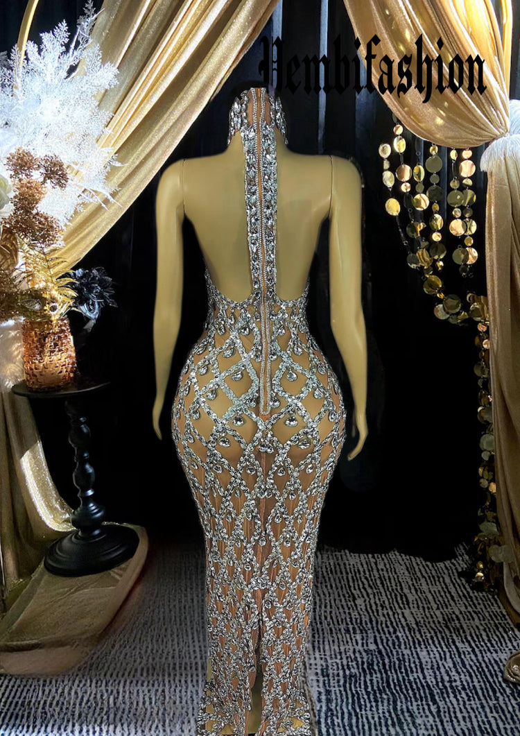 The Vero Diamante Dress With Rhinestone is the ultimate statement piece for those looking to turn heads. Adorned with shimmering rhinestones, this Rhinestone Dress is perfect for special occasions, offering a dazzling look that stands out in any crowd. The floor-length silhouette of this Long Dress gracefully flows with every step, enhancing your elegance and sophistication. Whether you're attending a gala, wedding, or evening soiree, the Vero Diamante Dress ensures you shine brighter than anyone in the room.