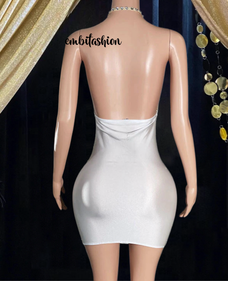 Turn heads with our Stunning Diamante Mini Dress, crafted to make a dazzling statement. This chic, fitted mini dress sparkles with beautiful diamante detailing, perfect for glamorous nights out. Elevate your style with this stunning dress that exudes sophistication and elegance.