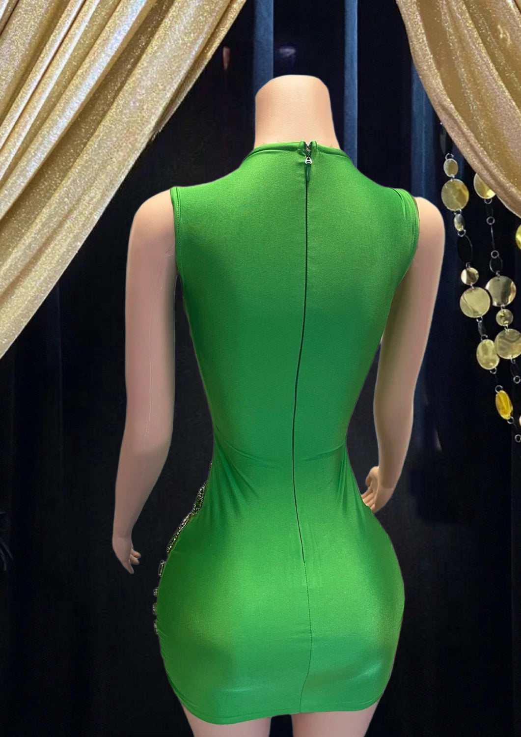 Stunning Green Diamante Dress-Mini Dress