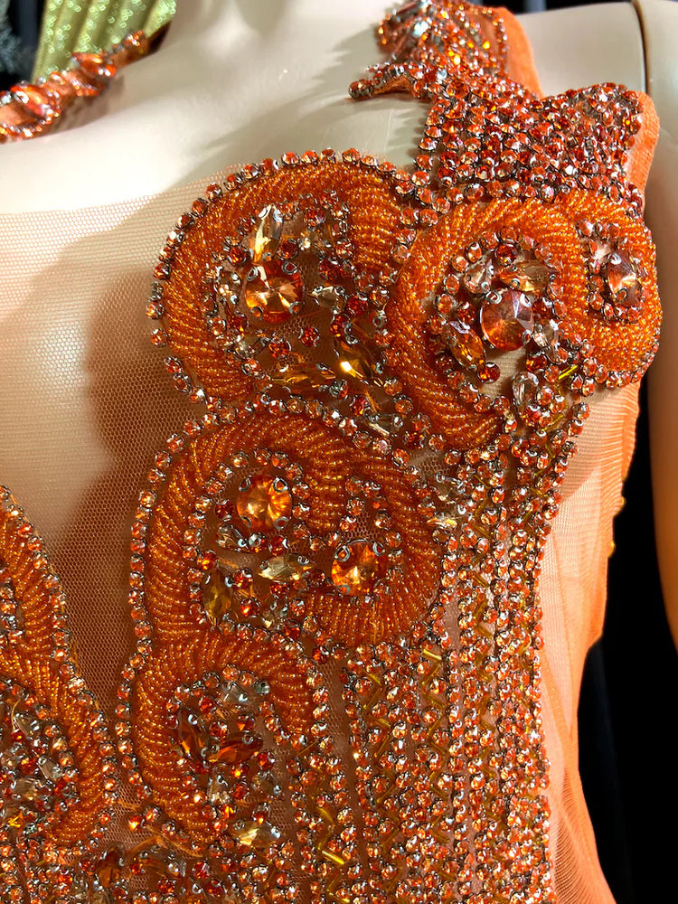 Shine at every event with this stunning Orange Mini Dress-Embellished Dress , perfect for cocktail parties or an unforgettable prom night. The intricate rhinestone detailing adds a touch of glamour, while the flattering mini silhouette ensures you make a bold fashion statement. Whether you’re dressing up for a night out or celebrating a special occasion, this dress will turn heads and make you feel like the star of the evening. Elevate your wardrobe with this dazzling, must-have piece that blends elegance with standout style.