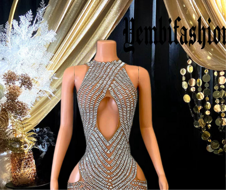 Shine in the EThan Diamante Dress, a luxurious evening gown adorned with sparkling crystal embellishments. Perfect for special occasions, this elegant dress features a flattering silhouette and intricate diamante detailing for a truly stunning look.