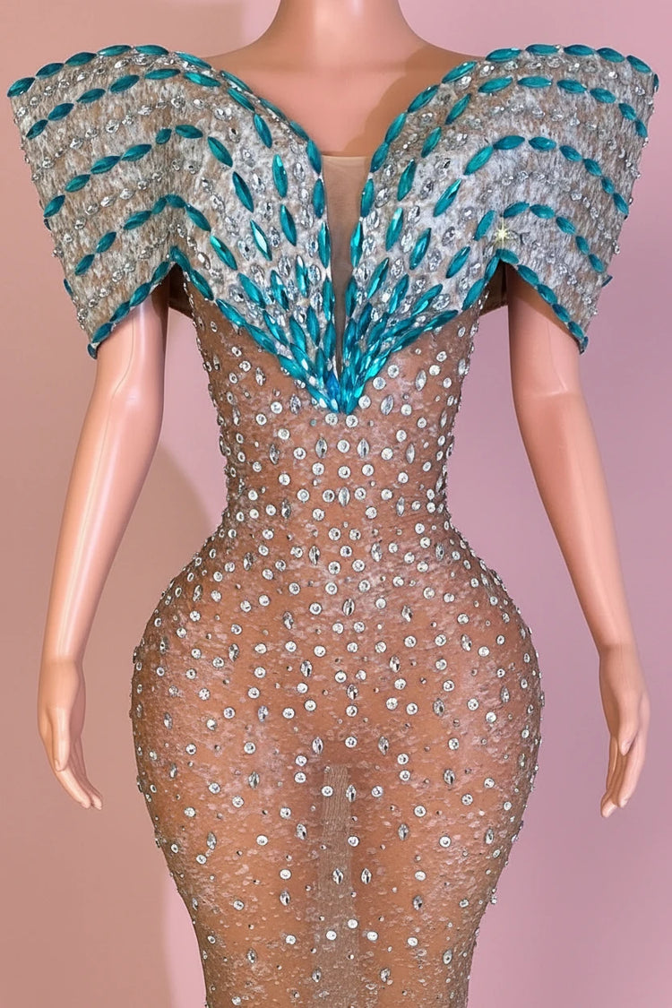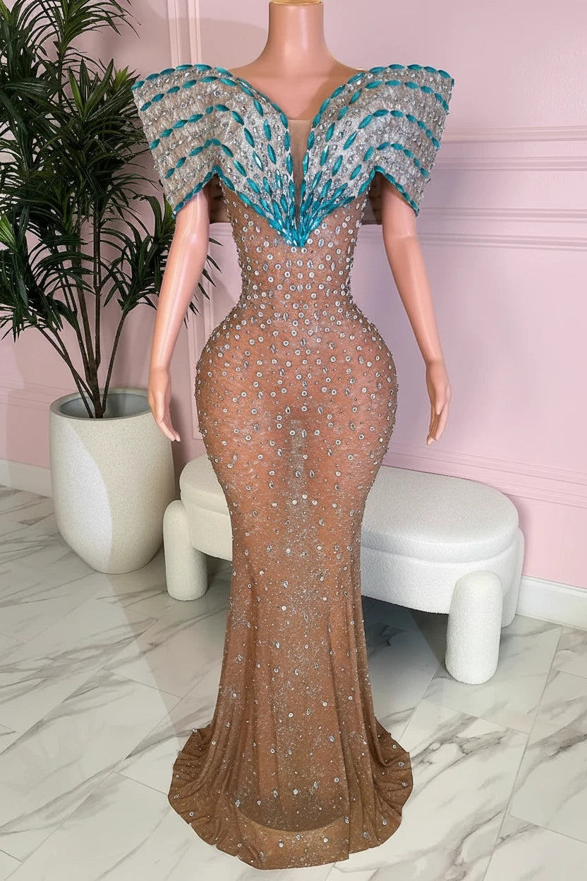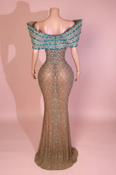 Turn every head when you walk in wearing this Rhinestone One-Shoulder Evening Gown from Yembi Fashion — a masterpiece made to dazzle.