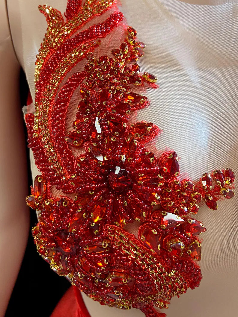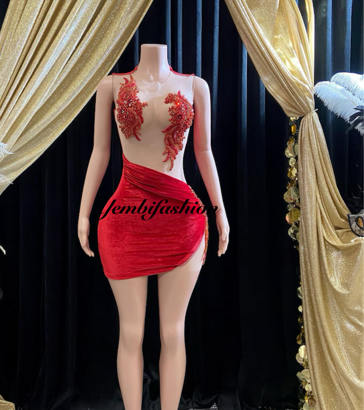 Step into the spotlight with our Embellished Red Mini Dress, a dazzling piece designed to turn heads. Featuring shimmering glitter accents and intricate rhinestone embellishments, this dress radiates elegance and boldness. Perfect for parties, events, or date nights, it combines a flattering mini-length silhouette with unparalleled sparkle. Pair it with your favorite heels to make a glamorous statement.