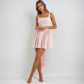 Effortless Parisian charm meets bold femininity with the Flore Skater Mini Dress. This playful summer piece features delicate spaghetti straps and a flattering short length, capturing the carefree elegance of a classic skater silhouette.