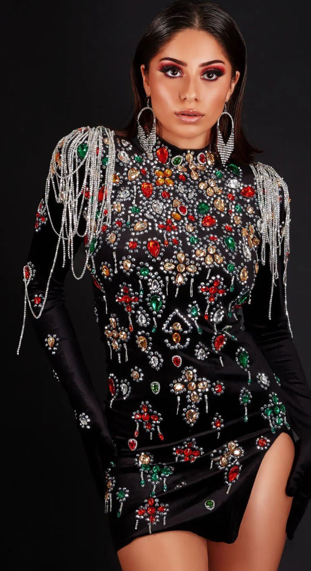 Shop the Rainbow Mini Dress, a dazzling diamante dress with long sleeves. Perfect for any occasion. Enjoy free shipping and easy returns!