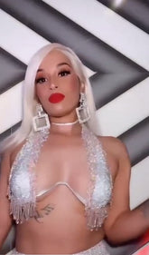 A fashionable two-piece matching set with rhinestone detailing, ideal for parties and special occasions. A fashionable two-piece matching set with rhinestone detailing, ideal for parties and special occasions.
