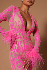 Lorry Sequin Feather Jumpsuit - Pink