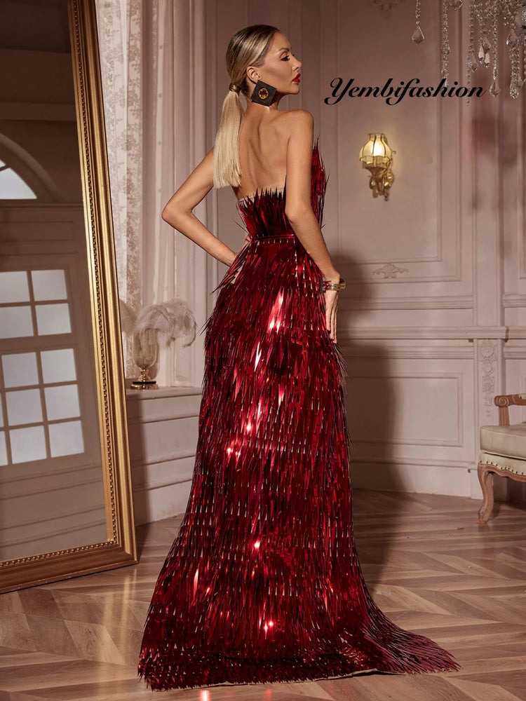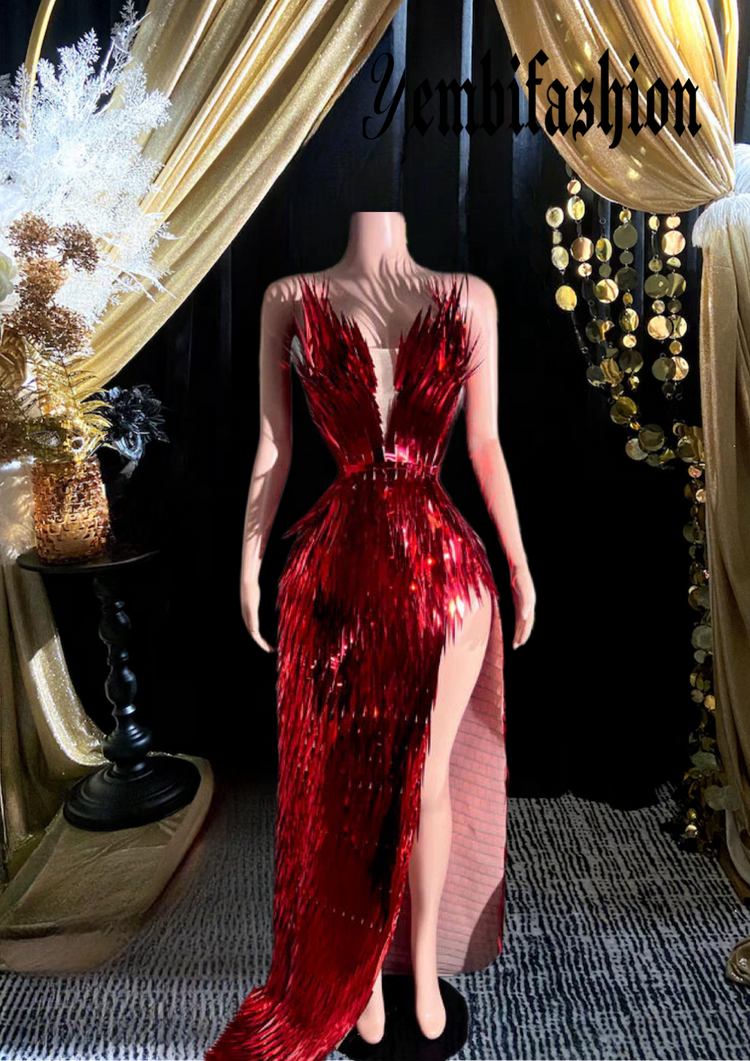 This Yembi side slit dress is the perfect combination of style and comfort. Made from high-quality materials, this dress features a flattering slit on the side, adding a touch of elegance to your look. Perfect for any occasion, this dress will make you feel confident and effortlessly chic.
