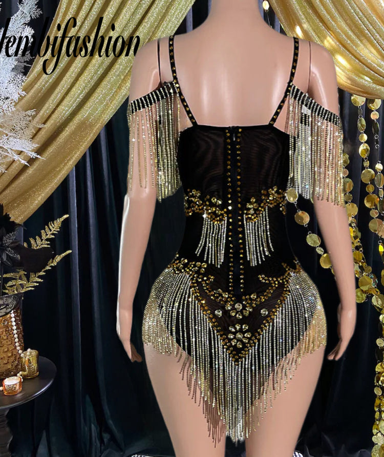 urn heads with this stunning rhinestone dress with tassel detailing, perfect for any cowgirl look. The sparkling rhinestones and playful tassels make it ideal for rodeo nights, western parties, or a unique statement at any event. Feel confident, stylish, and cowgirl chic!