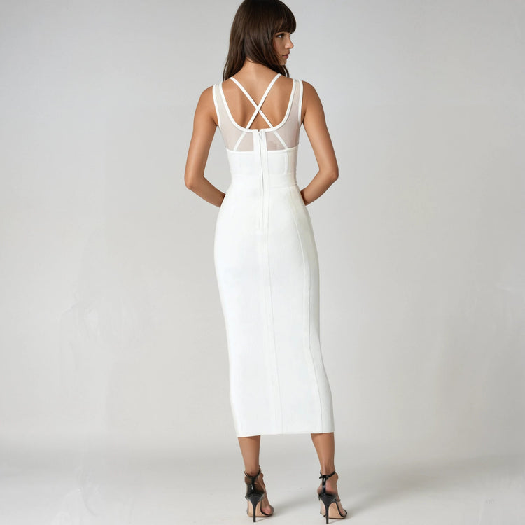 Exude understated luxury and confident elegance with the Laury White Bandage Dress. This striking white silhouette features a sophisticated off-shoulder neckline and a spectacular open back, creating the perfect bodycon dress shape.