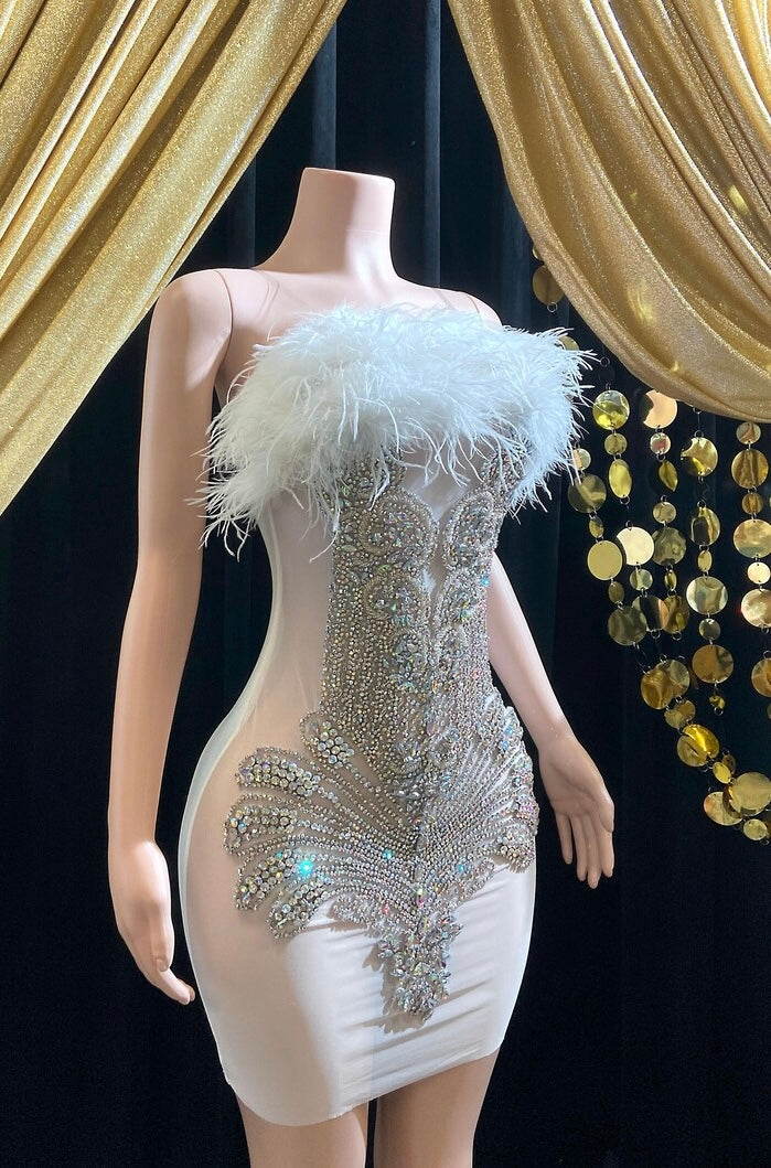 Step into the spotlight with our stunning tulle Rhinestone dress, adorned with dazzling rhinestones that catch the light with every move. This exquisite piece is the epitome of sophistication and charm, designed to make you feel like the star of the show at any special occasion