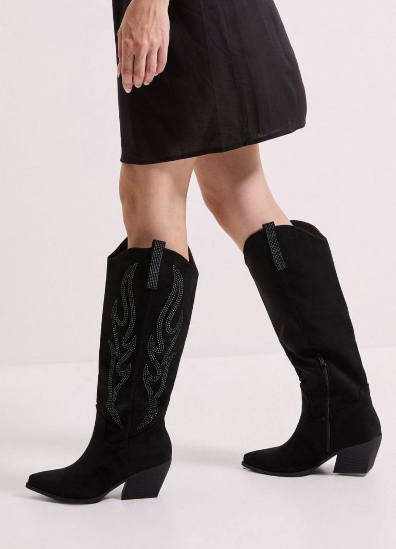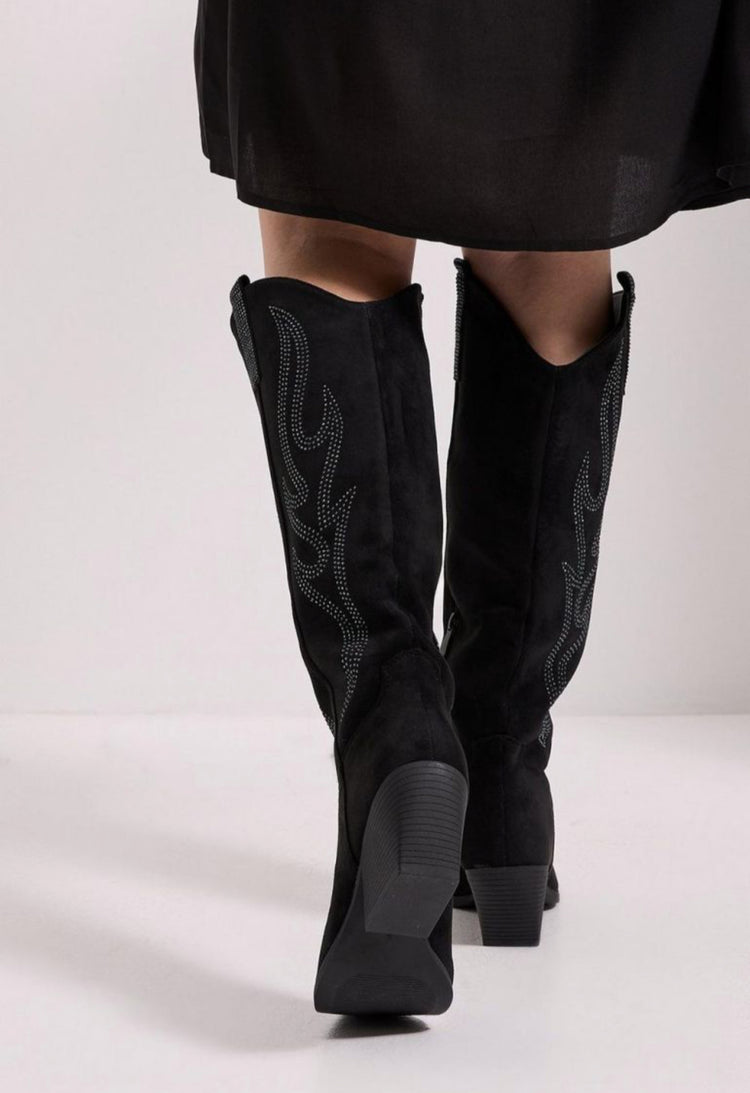 Laure Faux Suede Knee High Western Cowboy Boots in Black