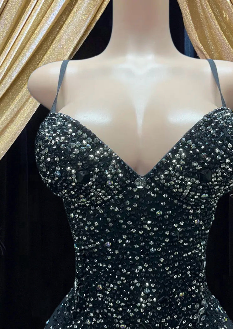 Night Club Bodysuit| black Crystal Bodysuit Costume Hot Sexy Bodysuit For Women Tummy Control Shapewear stranparant diamond dress |hamdmade - Yembifashion